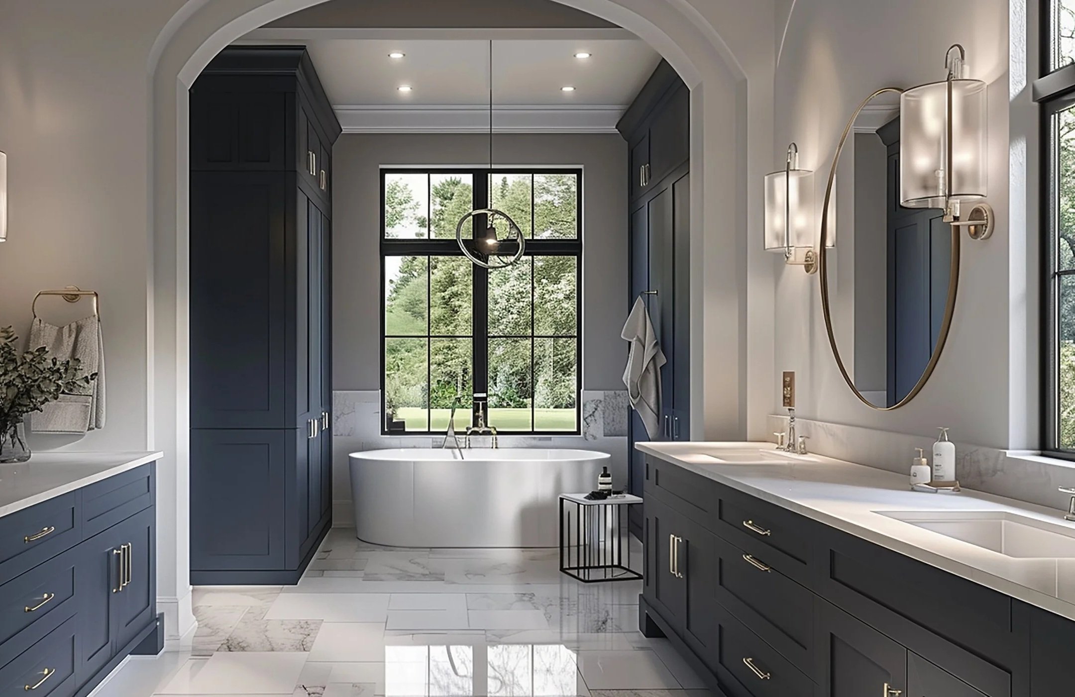 Transform your bathroom into a retreat. Includes marble or quartzite surfaces, custom cabinetry, high-end lighting, and spa features like rainfall showers or soaking tubs.